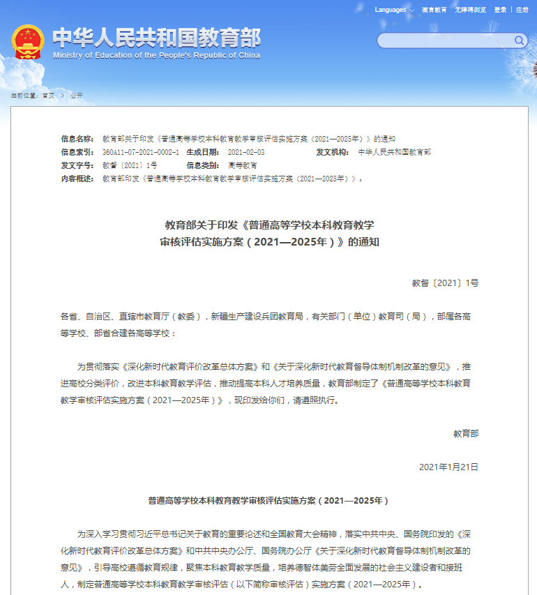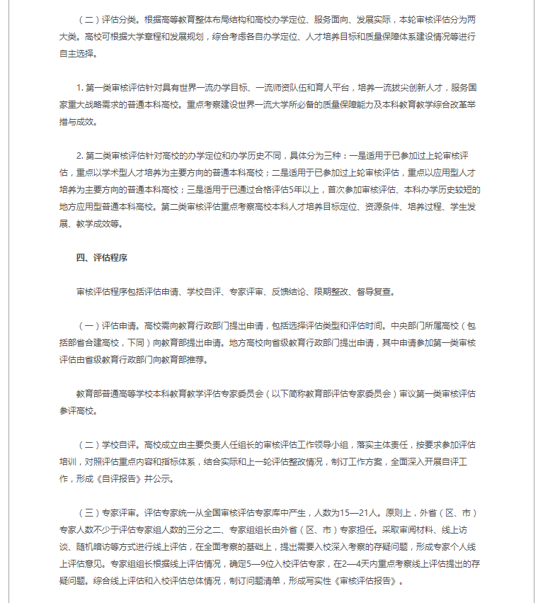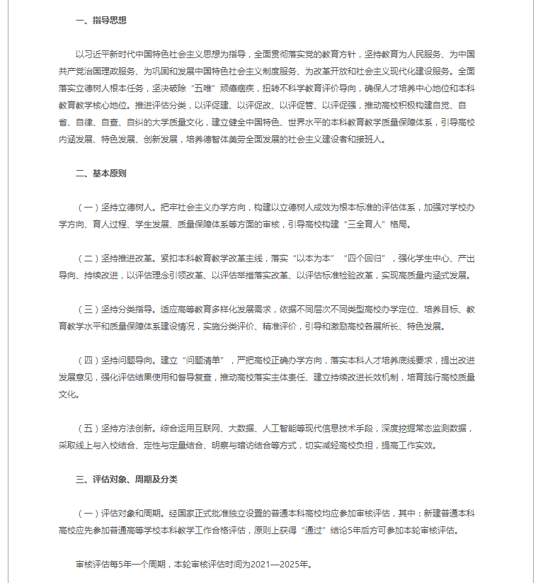 普通高等学校本科教育教学审核评估实施方案(2021—2025年)