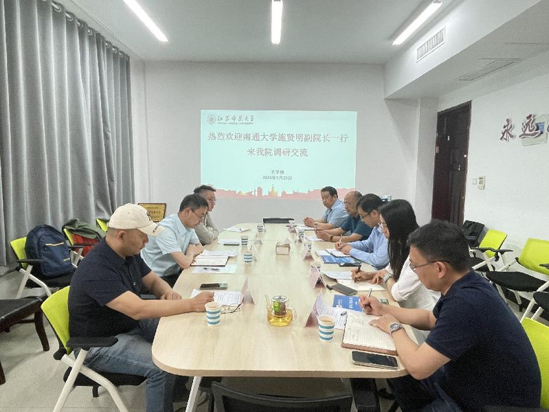 图2施贤明一行在江苏师范大学语言科学与艺术学院交流